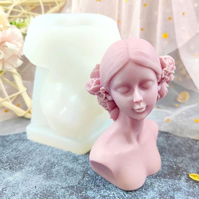 AAI Planet Close Eyes and Blind Woman Body Shape Candle Molds I 3D Fondant Silicone Bust of Girl Wax Mould I for Handmade Ornament Aromatherapy Plaster, Soap, Resin Casting, Art Craft Making Tools